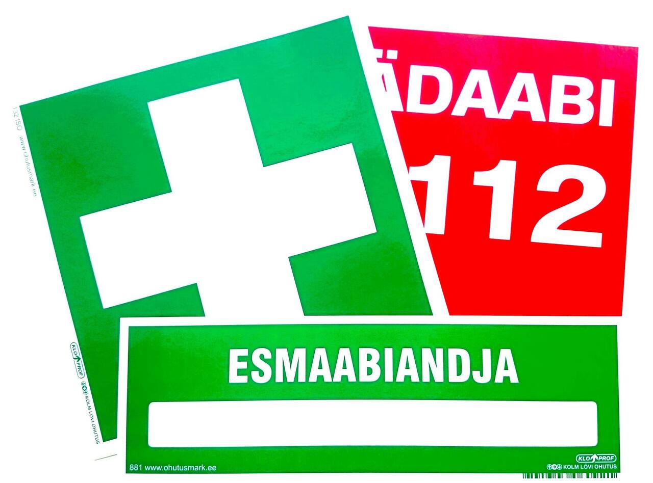 Lisaks nõutud märgistus esmaabikomplekti juurde: esmaabi vahendite asukoht, hädaabi number 112 ja esmaabiandja kontakt: 15€ +km
